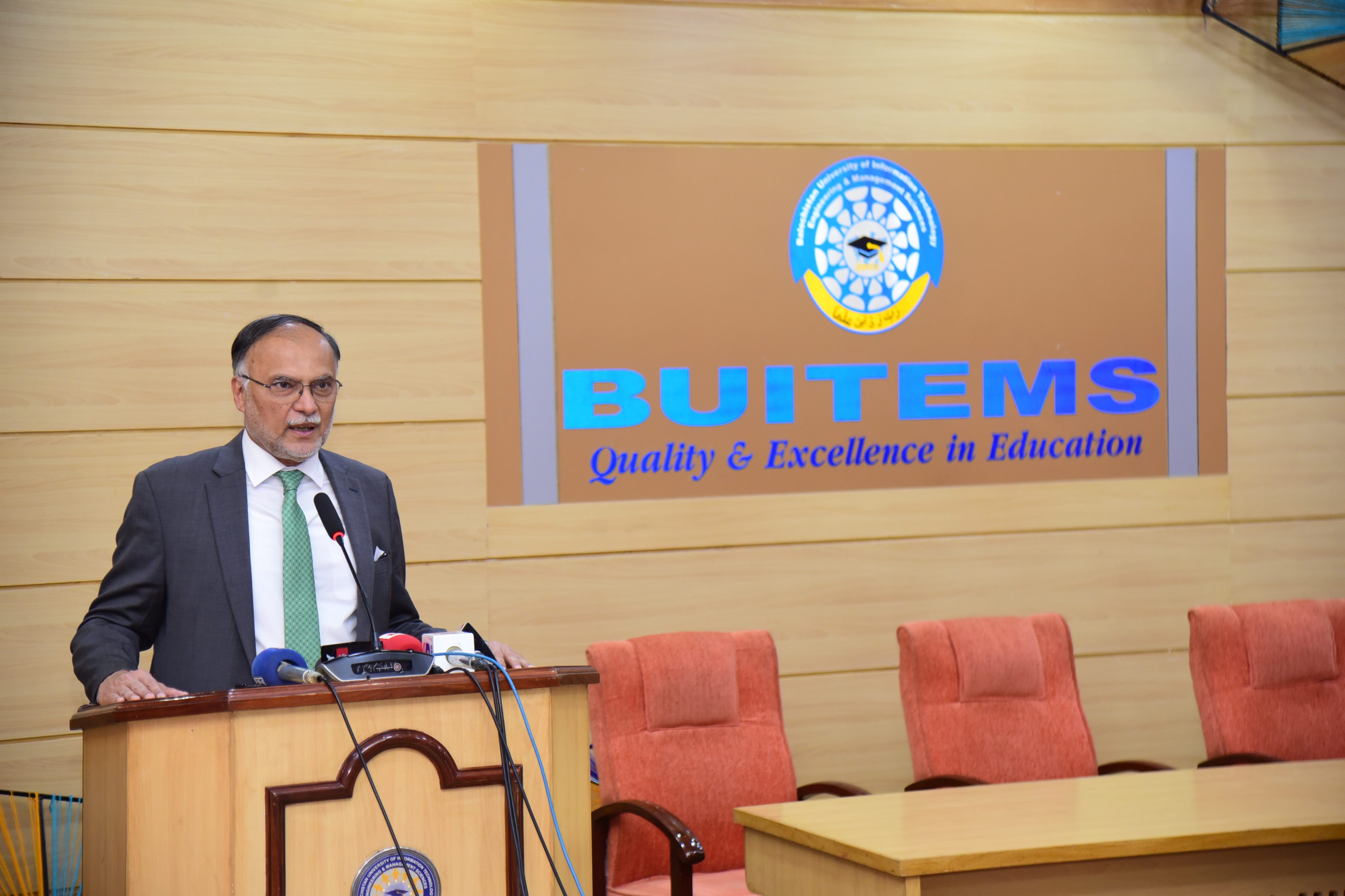 Quetta, April 18, 2025 – The Federal Minister for Planning, Development, and Special Initiatives, Mr. Ahsan Iqbal, visited the Balochistan University of Information Technology, Engineering and Management Sciences (BUITEMS) and delivered a compelling address to an audience of students, faculty, and university leadership at the BUITEMS auditorium.