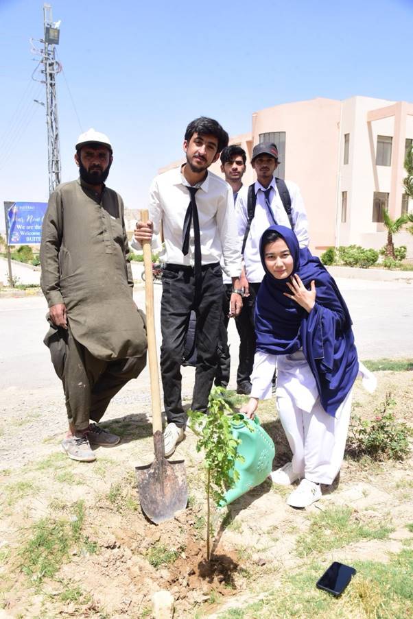 Prof. Dr. Mirwise Kasi, Acting Vice Chancellor/Pro-Vice Chancellor BUITEMS, Mr. Ikramullah Kasi, Regional Head OGDCL, esteemed Deans and their representatives including Dr. Ghulamullah Kakar, Dr. Hamdullah Tareen, Dr. Surat Khan, Dr. Khaadija Kakar, Dr. Tayyaba Akram, Mr. Sulaiman Kasi (Director A&GS), Ms. Shakeela Kakar (AD UAFA), the team of BUITEMS gardeners, Mr. Ahsan Achakzai (Registrar BUITEMS), along with students from the Environmental Science Department participated in the plantation activity.