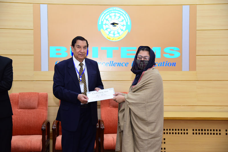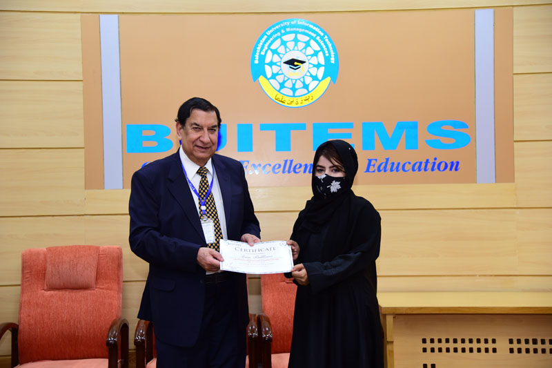 Upon the completion of HSK-1, a certificate distribution ceremony was arranged by China Study Center (CSC) BUITEMS. The ceremony was held on March 16, 2022, at 11:00 a.m. in the Pink Hall at Takatu Campus BUITEMS. Brig (R) Agha Ahmad Gul, CEO/Consultant Balochistan Think Tank Network (BTTN) was the Chief Guest of the ceremony.