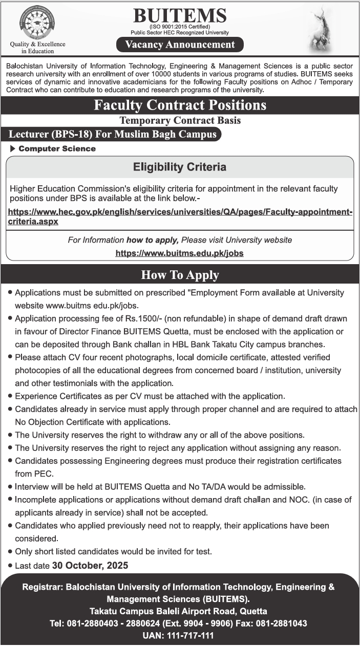 BUITEMS is an Equal Opportunity Employer. All qualified applicants will receive consideration for employment without regard to gender, disability, race, color, or any other characteristic protected by law.